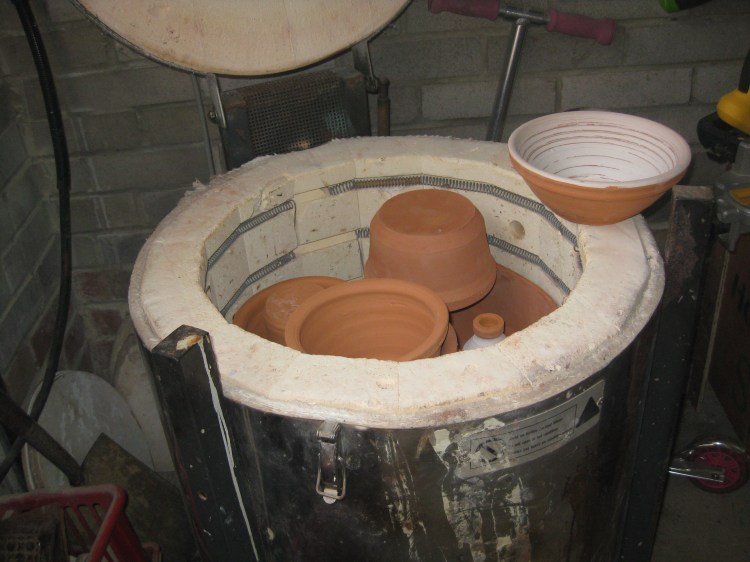 My kiln is quite old now and has been moved around a lot in various moves, but it is luckily still working very well, I think the key to a long lasting kiln is to fire low ( not much good if you fire at stoneware temperatures) but the best stoneware is salt or woodfired. Whilst searching through boxes of pots in my stable, I found some bisque fired stoneware pots that i’d overlooked so will be glazing them for the wood firing in October ( maybe ). The kiln took approximately 30 units to fire a long bisque, with solar panels on the roof on a nice sunny day can generate 23 average , equates to one and half days generation. Our energy supplier is one of the green companies so I hope most of the electricity it took to fire the kiln was sustainable.