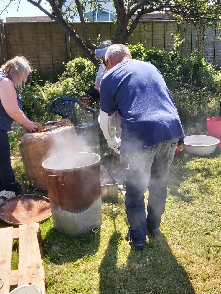On the last day we had a Raku firing , I had never used this kiln before, I had bought it from a lovely lady Bren and made sure she came along to take part. I had been telling my visitors that the last day would be special and had made pots they could glaze for a fiver. Not many turned up, but our neighbours did so they had a go too.