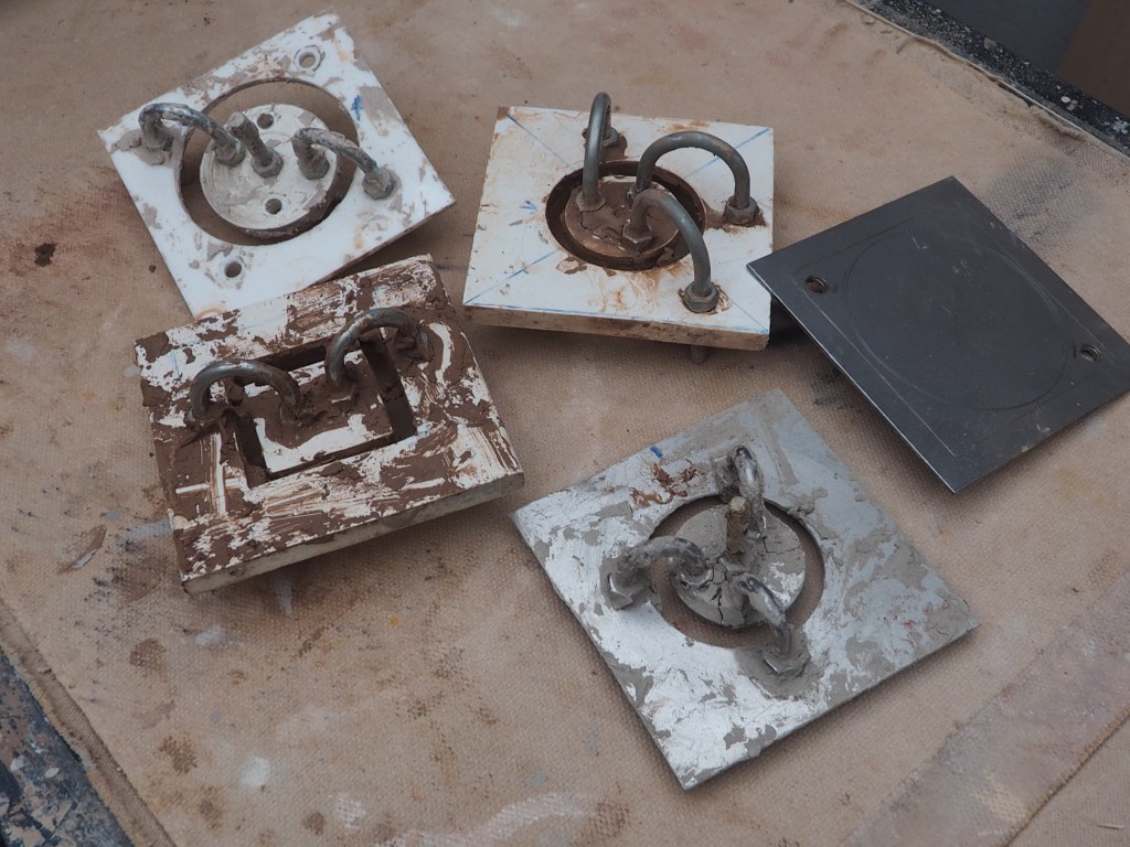 The hollow dias are made by cutting an inner and an outer and attaching both with a U bolt, which the clay passes and is mended by the time it gets to form whatever shape you have cut in the dia. My first shape was a cylinder which was cut using two sizes of hole saw, in plastic sheeting from builders upvc an odd bit of soffit board. My second was out of steel plate cut with special hole saws meant for steel.