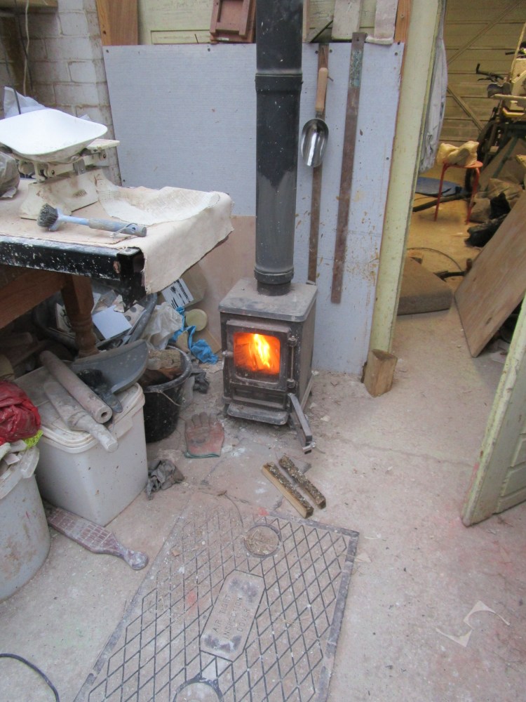The workshop is a little bit chilly after a lot of very mild autumn days, first fire of the autumn/winter season.