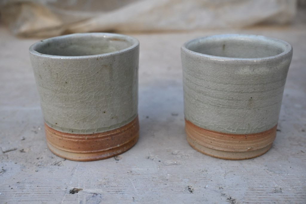 After sieving Hazel ash from the Bakehouse at the Weald and Downland museum and ash from our wood burning stove, Ash logs from trees dead, sadly from Ash die back. I made them into glazes, same constituents but different ash. This how it all worked out.