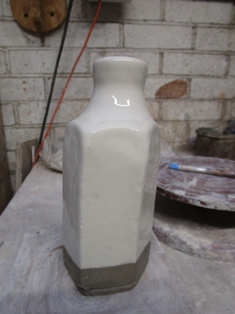 Then dragged through with bristle brush and rubber tool. Then the long process of drying and eventually biscuit firing .